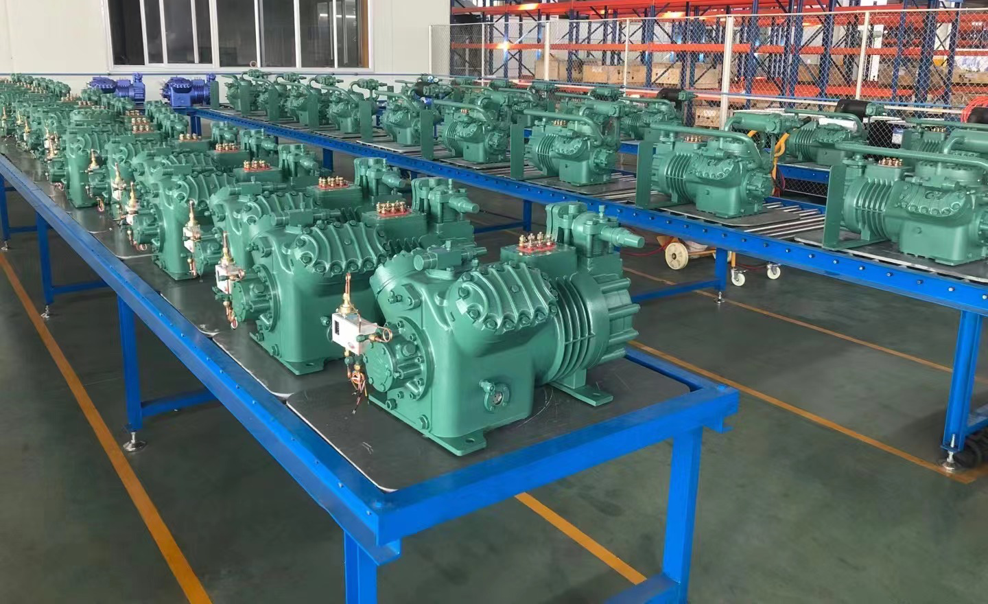 冷庫壓縮機的主要構成部分包括壓縮機本體、電機、壓縮機油和控制系統等。壓縮機本體是壓縮機的核心部件,由壓縮機頭、氣缸、曲軸、連桿、活塞等組成。壓縮機頭是氣缸的上部,其內部有排氣閥、吸氣閥、壓縮室等。氣缸內部是活塞和曲軸的工作區域,通過連桿將活塞的往復運動轉化為曲軸的旋轉運動。電機是壓縮機的動力來源,通過驅動壓縮機本體工作,使其達到制冷效果。壓縮機油是保證壓縮機正常運轉的重要潤滑和冷卻介質,其作用類似于發動機的機油。控制系統主要包括電器控制箱、傳感器、電磁閥、壓力開關等,用于監測和控制制冷循環系統的工作狀態。